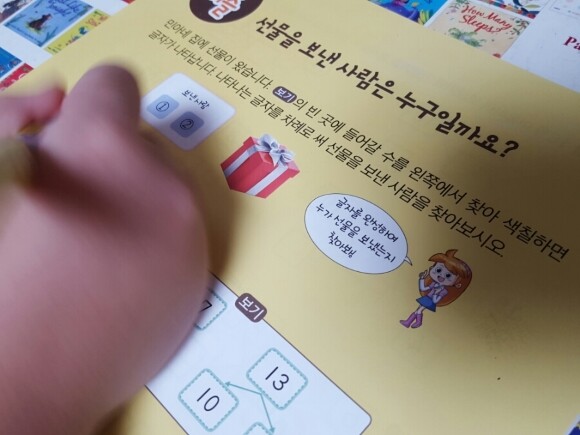 엄마가 옆에서 책에 있는 내용 조금씩 알려주면서 하고