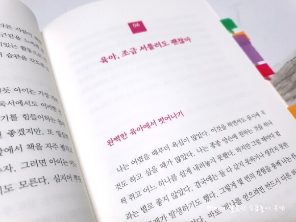 그 중에서 가장 공감이 갔던 대목은.. 바로 '완벽한 육아에서 벗어나기' 였어요.