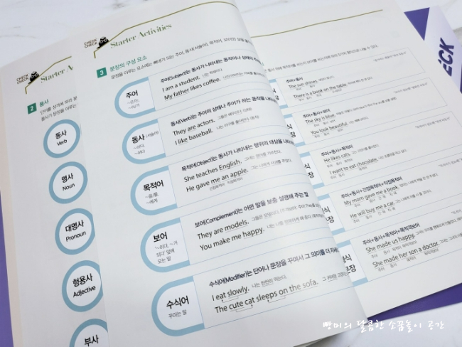 영어의 8품사와 문장 구성요소, 문장형식, 구와 절에 대한 핵심이 한 눈에 파악되기 쉽게잘 정리되어 있어 본 학습 전 되짚어보는 시간이 되었습니다.