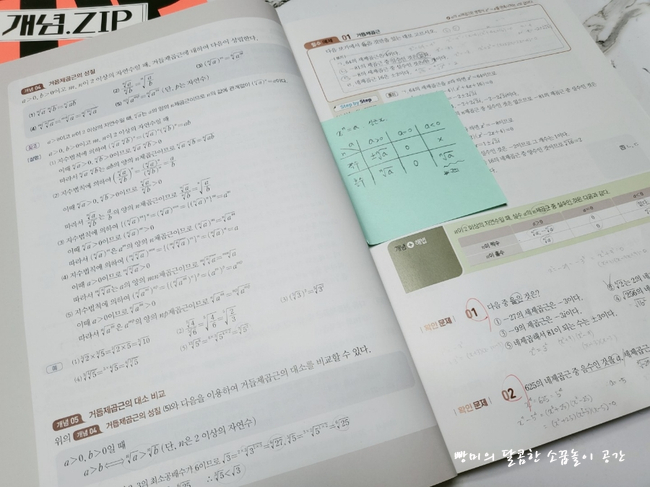 각 단원에서 꼭 알아야 할 개념과 원리를 자세히 정리해보고, 또 예시를 통해쉽게 응용해볼 수 있는 개념zip 입니다.