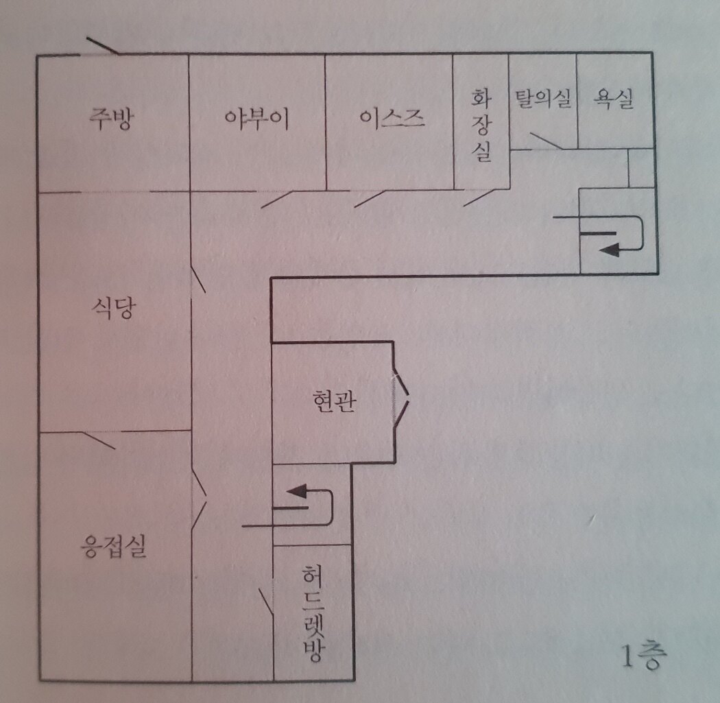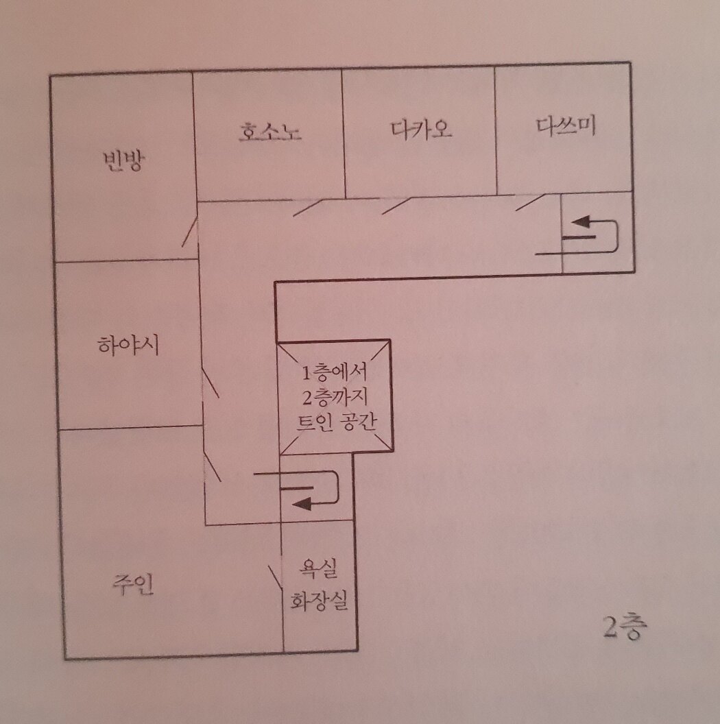 우리는 러시를 보고 토론에 들어가기 전에 화이트보드를 준비해서 사기누마 저택의 평면도를 그렸다.  - P145