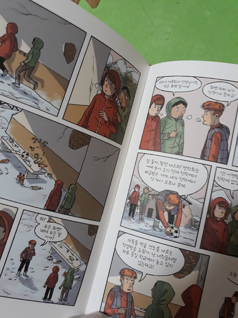 축구와 만화를좋아하는평범한세아이마테오 줄리아 페데리코 하지만 지진이나면서. 집과생활 또한 자신감도무너졋어요ㅜ만화형식으로되어있어서 더 실감나는부분도있어요이세친구는. 어느날갑자기일어난지진으로,,모든것이 무너져서 살고있던집도 몸도 마음도 여진으로 갑자기무엇이 더 무너질지도모르고 다칠지도모르기땜에 자신이 살던동네는 출입금지가된상황입니다하지만 페데리코 반려견 아르투를 찾기위해 마테오와 줄리아는 함께 출입금지된 마을로들어가는대. 과연찾을수있을까요? ㅜ한번씩다들 읽어보세요~~~ 울산에서도지진이일어나고 서울도 약간의지진및흔들림이있어서넘무서운데 그래도 다른나라처럼 지진이심하지않은것에 감사하며살게되네요세친구도 불안한삶은계속되지만 무너진곳에서도 새로운생명이자라듯. 상처를이겨내고 새롭게시작하길 바래봅니다이상개인적인후기였습니다