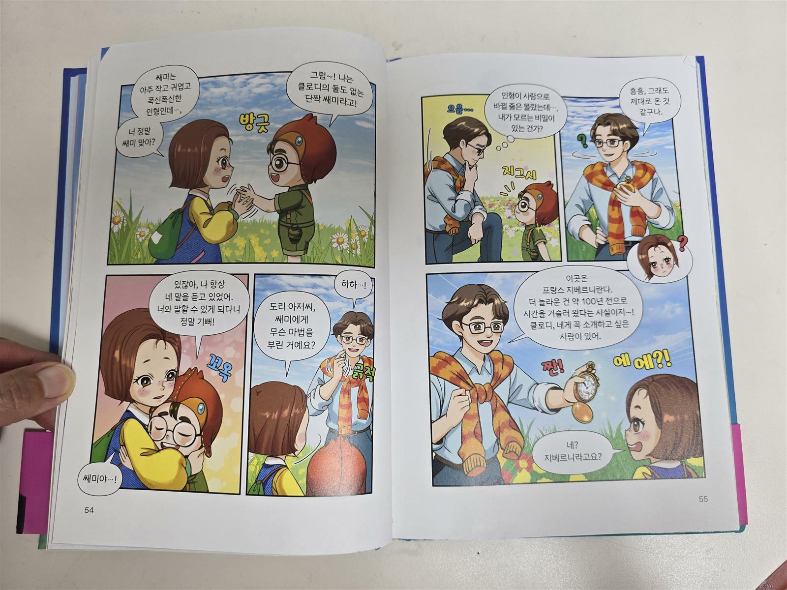 클로디의 손에서 빛이 났고, 두 사람은 순식간에 시간 여행을 떠나게 되었지요