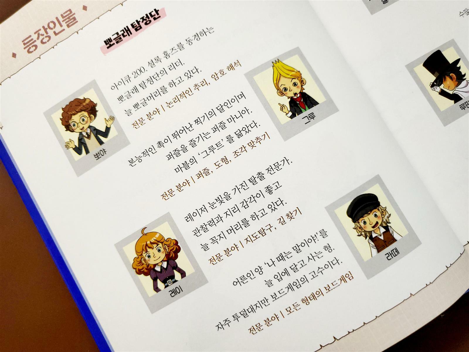 탐정단과 함께 다양한 퀴즈를 풀며 진행해보는 책이랍니다.