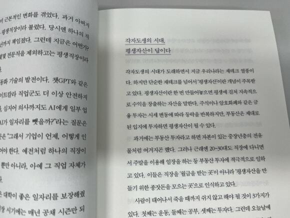 '1,000만원으로 3년 안에 300만원 월배당 만들기'라는 책은 요즘 같은 미국 주식 투자, ETF 투자 붐에 맞게 든든한 월배당 포트폴리오를 만드려는 투자자들에게 딱 적합한 책이 아닐까 생각한다. 이 책의 저자 인생업(임승현) 님도 평범한 직장인이다. 저자는 직장인으로 살아가면서 갑작스럽게 구조조정이라는 큰 사건을 겪은 후 월급만으로는 살 수 없다고 판단하여 다양한 수입 파이프라인을 설계하기로 마음먹었다고 한다. 그래서 짠테크와 N잡을 출발점으로 지식창업을 거쳐, 현재 배당ETF와 커버드콜 전략으로 인컴 포트폴리오를 운영 중이고, 지금부터 잘 살기 위한 투자를 목표로 단기 시세차익보다는 흔들리는 시장에서도 매달 현금이 들어오는 구조와 시간이 지날수록 복리처럼 작동하는 자산 설계를 중요하게 여긴다고 한다.