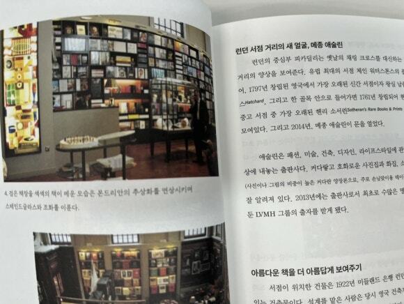 영국의 책방은 어떤 구조로 되어 있고, 내부의 운영, 책방의 사장이나 매니저, 점원 들은 어떤 생각을 갖고 있는지 잘 정리된 책을 만나 영국의 또다른 모습을 볼 수 있었다. ‘공간이 한눈에 보이는 영국 책방 도감’은 커다란 대형 서점이 아닌 책을 사랑하고, 책방을 사랑하는 사람들을 위한 그런 책방 19곳을 소개하고 있다.