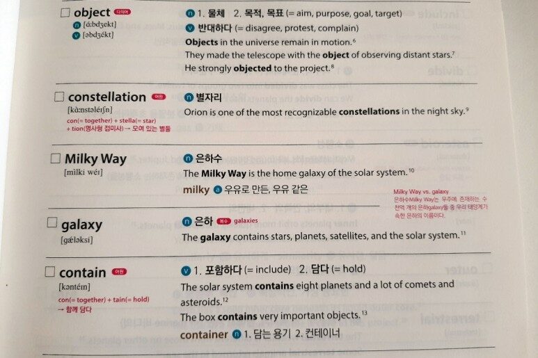 꼭 알아야 할 어휘들의 의미를 알려주고 있다.
