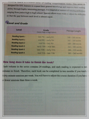 * 참고로 리딩스파크의 난이도를 보면 1~3권은 중학교 1~3학년 수준 / 4~6권은 고등학교 1~3학년 수준 정도라고 한다.