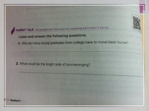 독해 이후 문제의 구성은 본문 내용의 이해도를 알아볼 수 있는 문제풀이 3~4문제 - 본문 내용을 간단히 짚어볼 수 있는 "STORY MAP" - 단어에 대해 되새기는 "VOCABULARY" - 듣기 능력을 향상시킬 수 있는 "PARROT TALK"로 되어 있어 다양하게 활용이 가능하다.