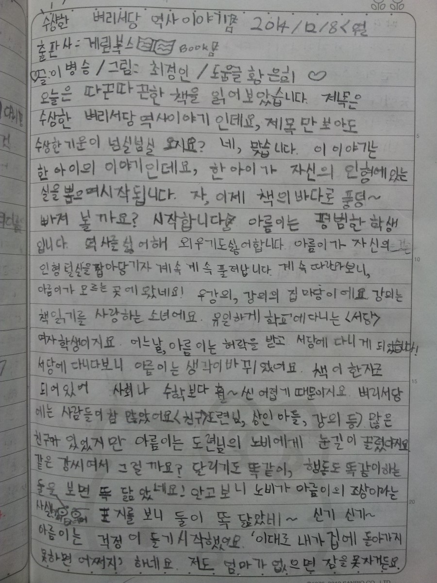 아름이는 날마다 역사책을 읽고 또 읽었습니다.