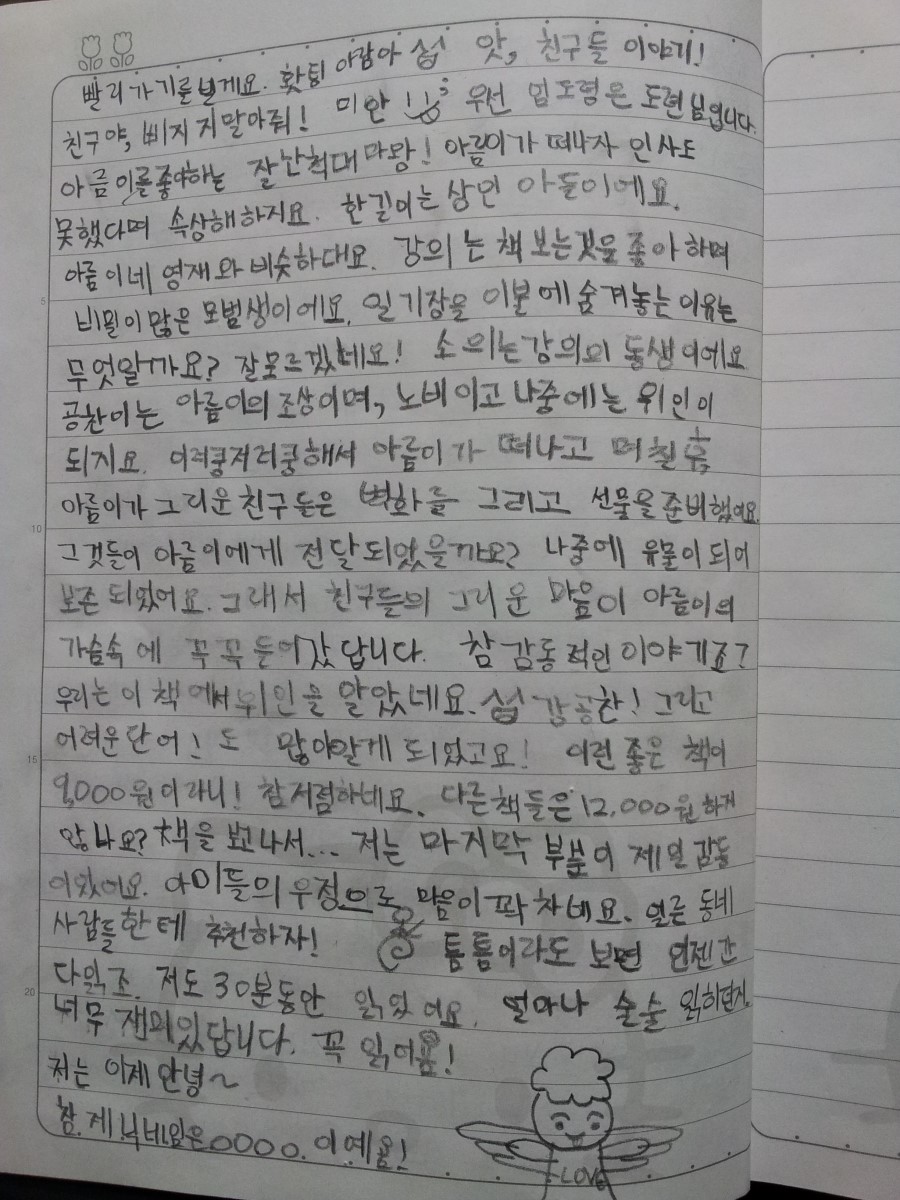 이번에는 블로그에 글을 쓰듯 독후감을 써보고 싶다고