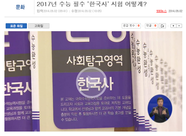 한국사는 어떤 다른 과목보다도 국민들의 한국사에 대한, 우리나라