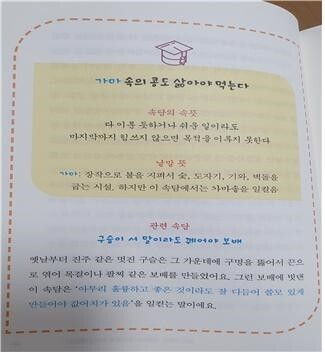 또한 현재의 비슷한 다른 사례들도 함께 수록해주어서 현재를 살아가는 아이들이 비슷한 상황에서 적용할 수 있도록 도와주기도하고 마지막 단에는 서술하기를 통해서 이런저런 생각을 스스로 해보면서 써보는 주제를 던져주기도 하고요.