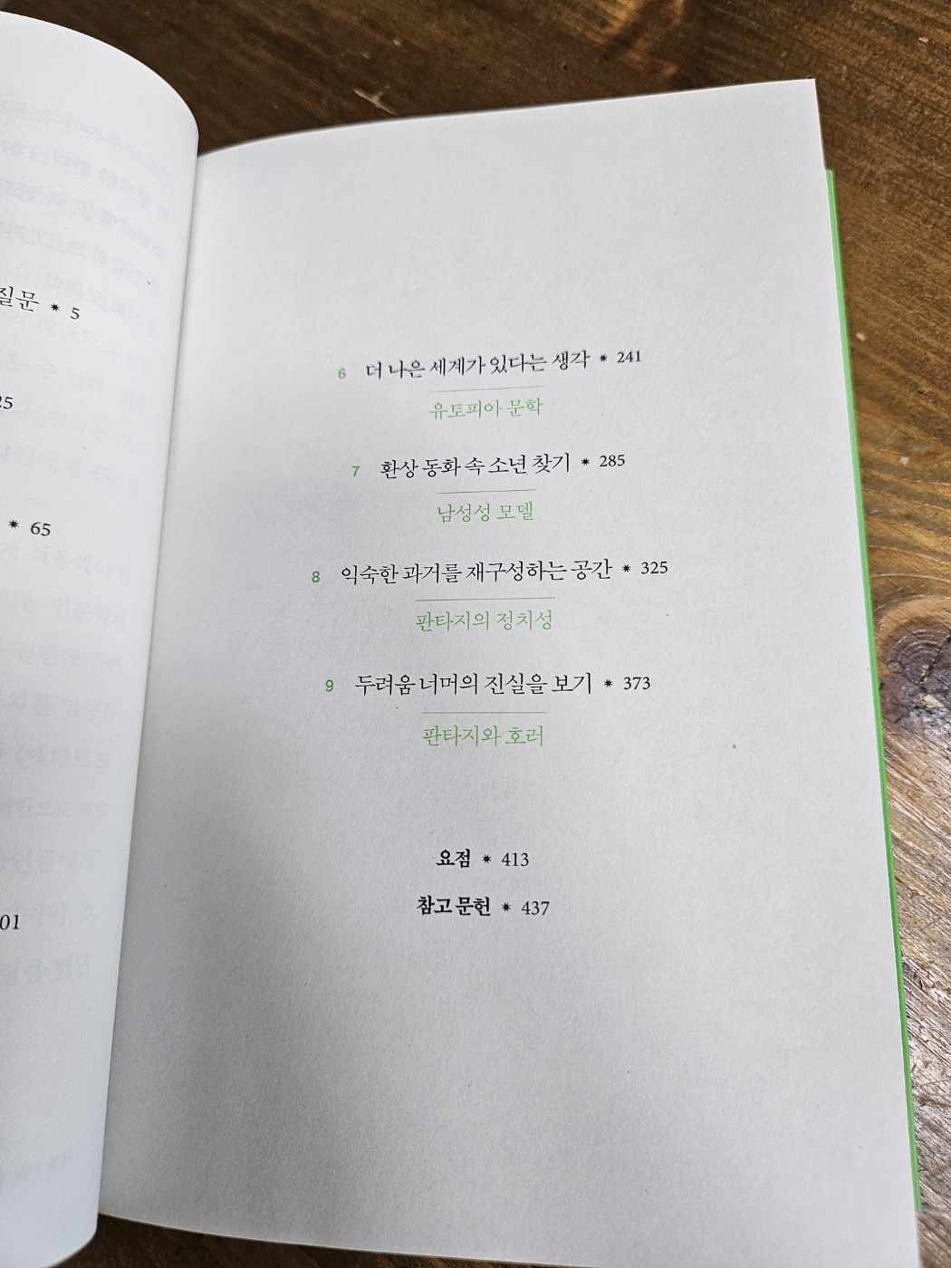 그 모든 질문의 중심에는 결국 두 가지 질문이 차지한다.첫째, 판타지가 어떻게 의미 있을 수 있는가?둘째, 판타지의 역할은 무엇인가?