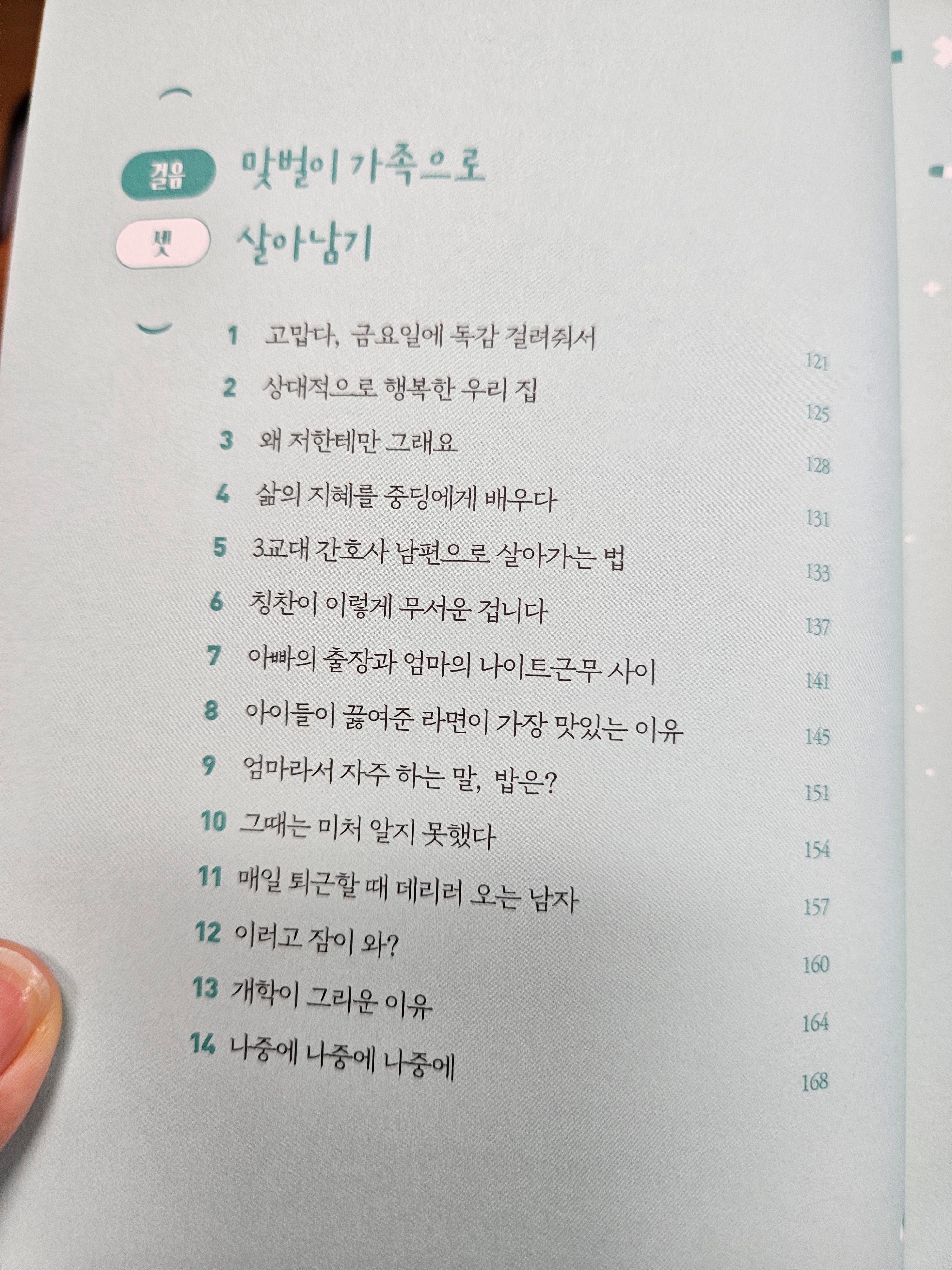 우리는 서로가 서로에게 많은 고마움을 느낀다. 바깥일의 무게감과 책임감을 어깨가 무겁도록 느끼고 있다. 집안일의 만만치 않음과 해도 해도 끝이 안나는 무한반복에 놀라며 반찬투정 따위는 사라진 지 오래다. 철없음에 다투던 부부싸움은 멀리 사라지고, 서로가 주름과 흰머리를 바라보며 나이 들어가고 있다.