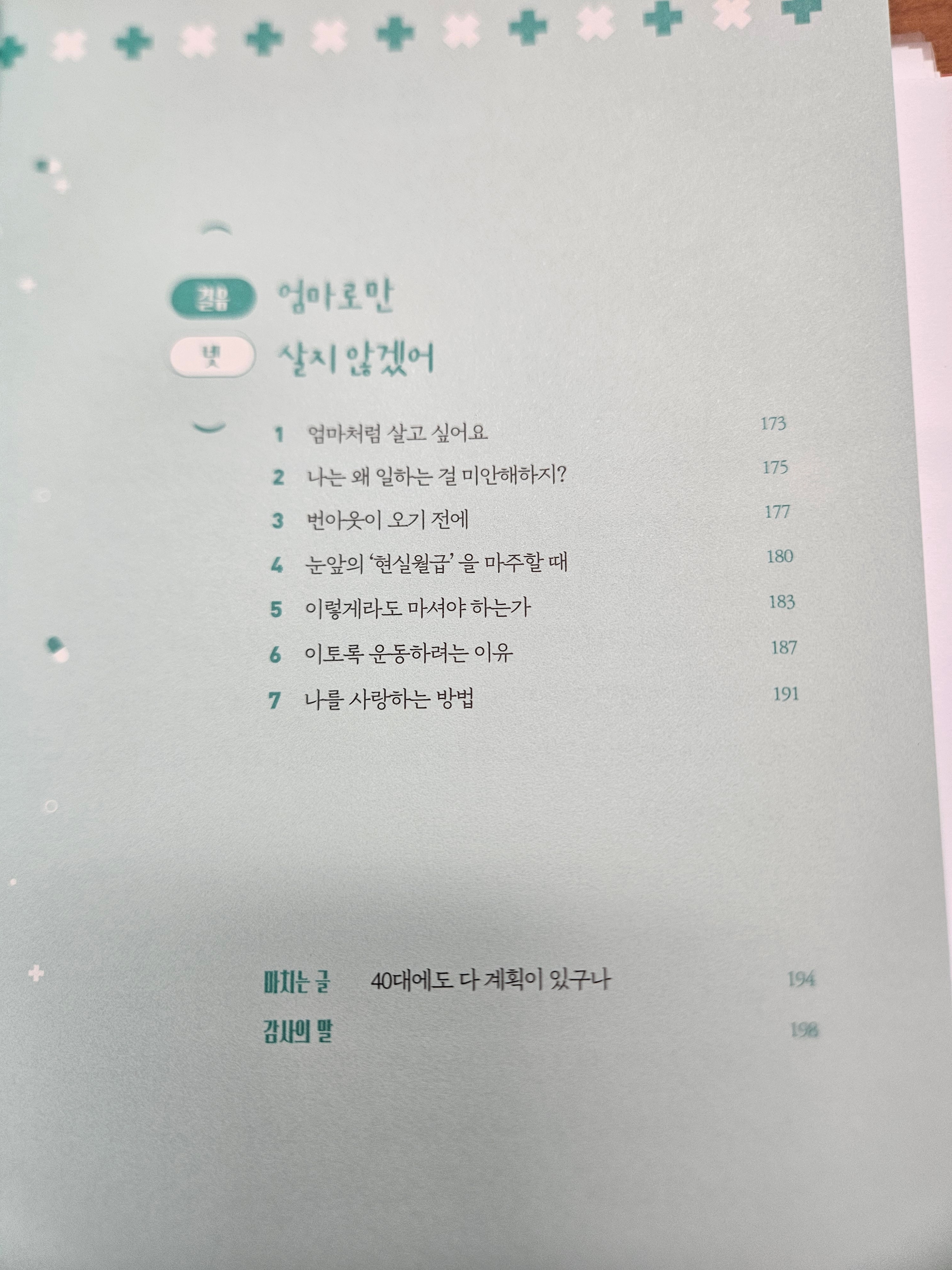내가 건강해야 내 가족을 건강하게 지킬 수 있다. 그리고 내가 건강해야 깔깔거리는 웃음소리가 넘치는 우리 가족의 모습을 지속할 수 있다. 아픈 엄마는 본인이 아파서 다른 것에 신경 쓸 겨를이 없다. 아픈 엄마로 살면 잃는 것이 많다. 40대에도 멈추지 않고 굴러가는 자전거 바퀴처럼 계속 굴러가고 싶다.