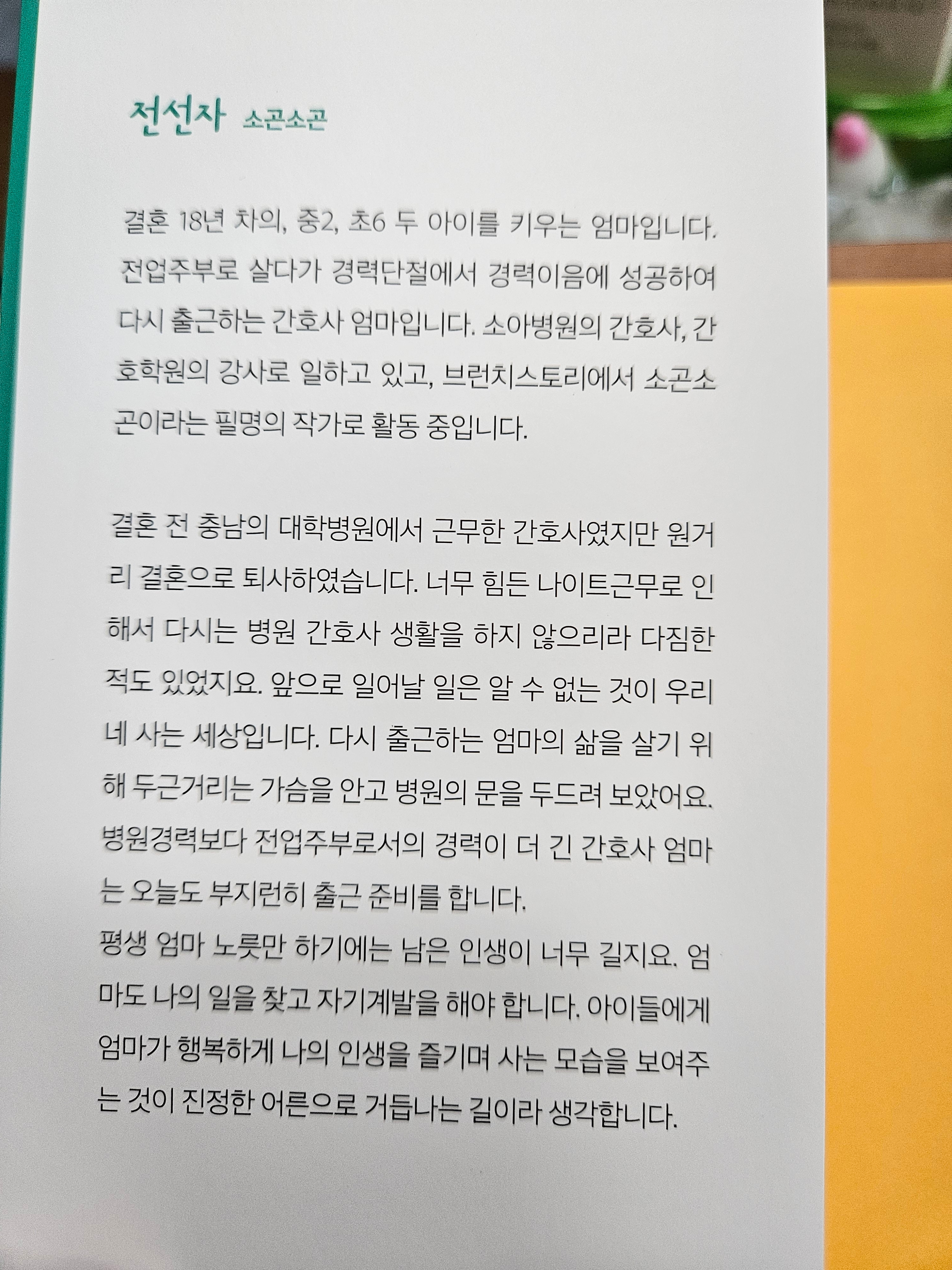 용기란 별거 없는 거다. 까딱하면 백이십 살까지 산다는 우리네 인생이다. 평생 엄마 노릇만 하기에는 남은 인생이 너무 길다.