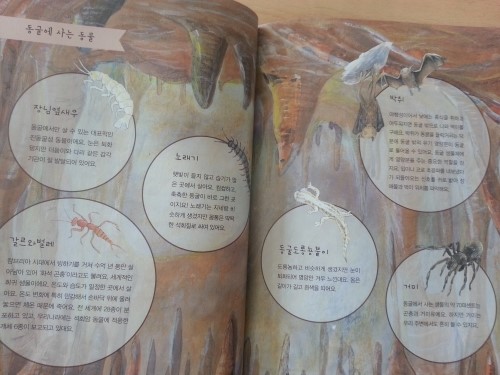 이 책은 동굴에 사는 동물도 그림과 함께 알려주어 자연 학습서로서의 역할도 하고 있는 멀티 기능의 여행 책이다.