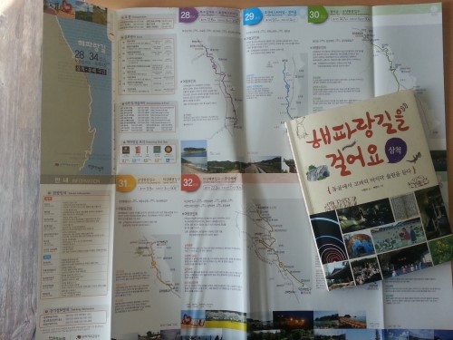 책 겉표지를 펼치면 해파랑길 28번 코스에서 34번 코스의 여행 지도가 나온다.