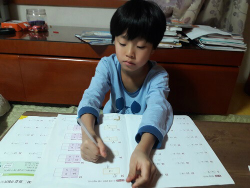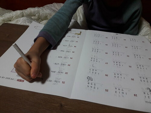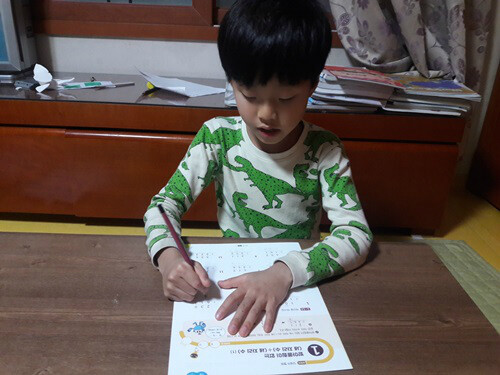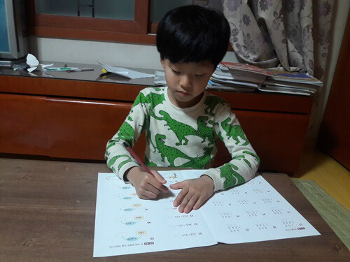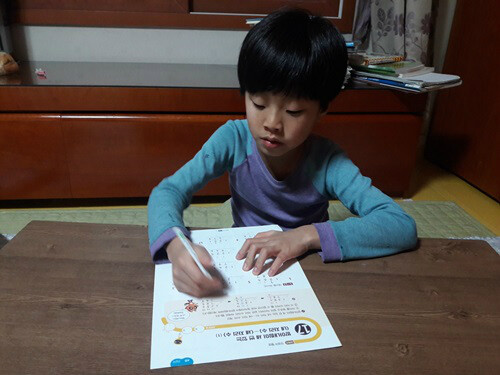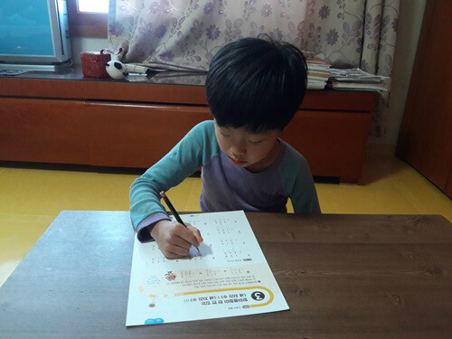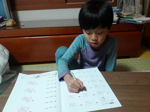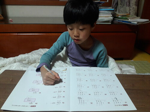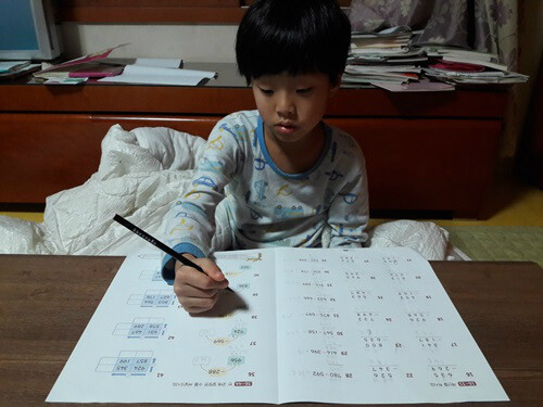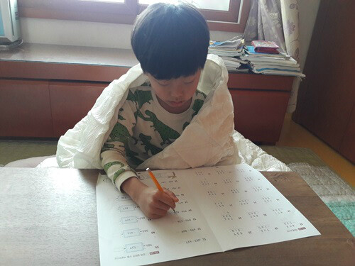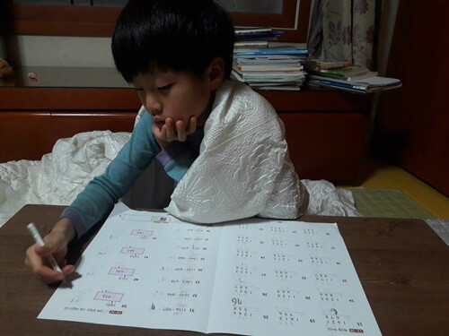 이불 속에서 나오기 싫은 겨울방학동안 열심히 쏙셈을 공부하고 있는 아들램