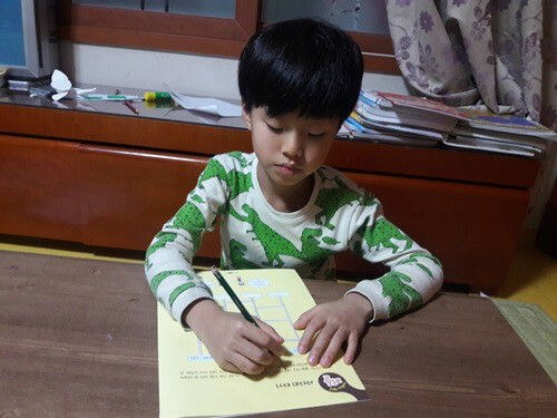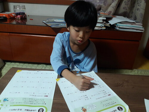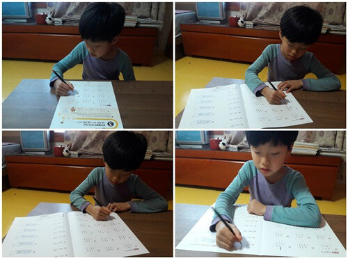 한쪽 풀고 조금 쉬고, 또 한쪽 풀고 조금 쉬더니 오늘은 논스톱으로 4쪽을 열심히 풀어보는 아들램이랍니다.