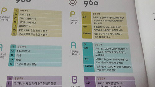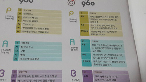 상위권 수학 960은 P단계부터 D단계까지 학교 수학의 내용이나 난이도를 생각해서 만든 영역별 맞춤 교재랍니다.