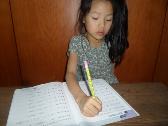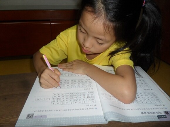 큰 소리로 외워가면서 표을 완성하고 있습니다.