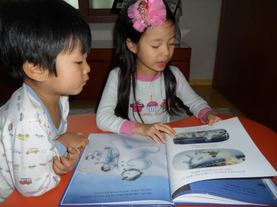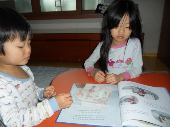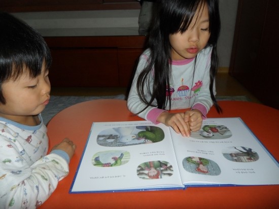 도착하자 마자 엄마보다도 먼저 한장 한장 넘겨본 아이들이랍니다^^
