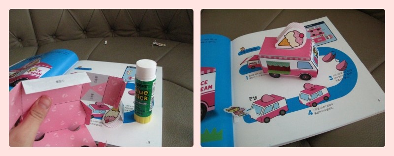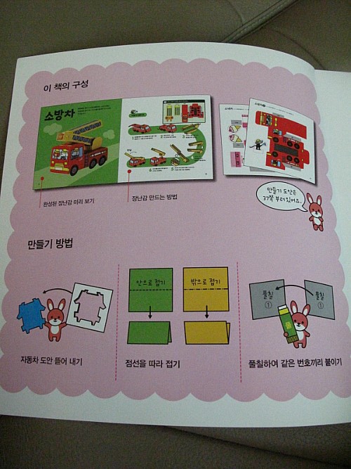 <하루하나 만들기 놀이터>는 앞쪽에는 만드는 방법과 완성된 자동차모양이 나오고,