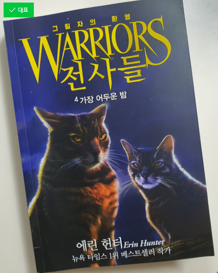 에린헌터의 전사들 제6부 그림자의 환영 네 번째 이야기 가장 어두운 밤은 여러 명의 작가들이 함께 모인 팀으로 동물 판타지의 재미와 상상력을 자극시켜주는 이야기와 그 속에서 재미는 물론 묵직한 메세지까지 더해져서 전사들 시리즈를 보면서 뉴육 타임스 베스트셀러 목록에 116주 동안 머무를 수 있는지 다시 한 번 그 저력을 느끼게 되는것 같아요.