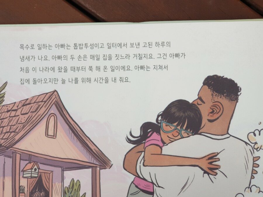 그림책 표지부터 내지 첫 장을 읽을 때까지만 해도 아버지와 딸의 오토바이와 관련한 행복한 에피소드 정도로 기대하며 읽었었는데 '아빠가 처음 이 나라에 왔을 때부터'란 문구를 본 순간 이민자의 삶을 보여주는 그림책임을 알게 되었습니다.