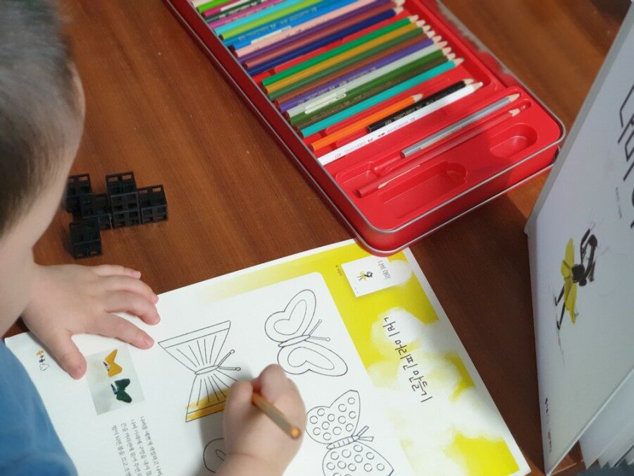 '나비 아이'는 나비에 흠뻑 빠져 있는 것 같아요. 놀이터가 시야에 들어오면 다른 건 아무것도 눈에 들어오지 않은 우리집 어린이들을 생각하면 놀이터가 눈 앞에 있는대도 나비만 쳐다보는 '나비 아이'는 정말 나비를 좋아하는게 분명해요.