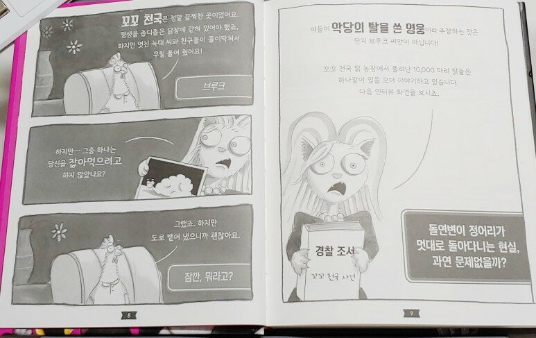 3권의 시작은 2권에서 배드가이즈가 꼬꼬천국의 닭들을 풀어준 사건의 인터뷰로 시작하고 있어요.