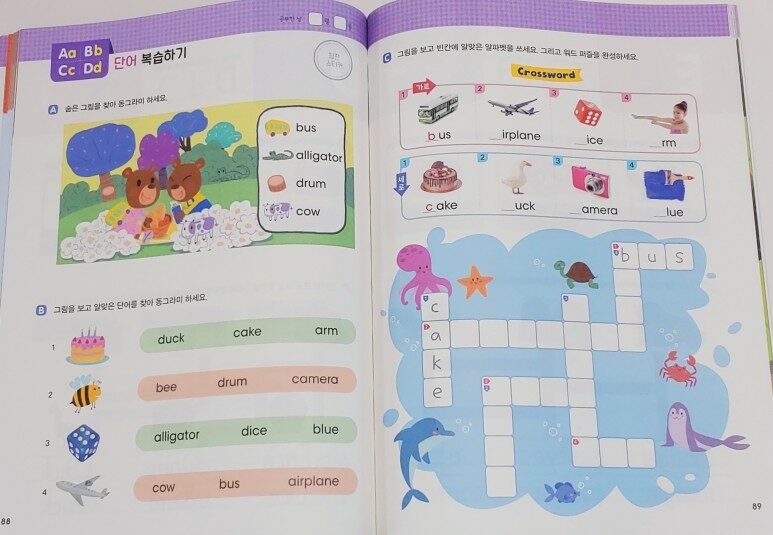 이 책은 알파벳과 단어 2파트로 나누어져 있어요.