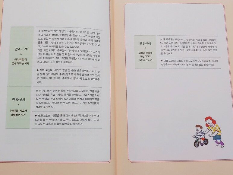 아이들의 연령에 따라 발달상황과 대화 포인트를 앞부분에서 알려주고 있어요.