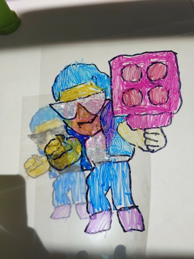 OHP 필름에 색연필은 잘 칠해지지 않기도 하고, 면을 가려서 색이 비치지 않으니 꼭 싸인펜이나 컬러매직을 이용해서 그린 그림으로 그림자놀이를 해보세요^^