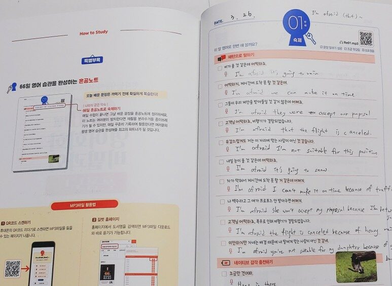 다행히 글씨 쓰는 걸 좋아하는 아이라서, (글씨연습한다 생각하고) 하루에 1개씩 쓰기로 했답니다.