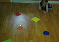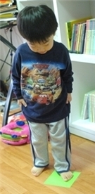 둘째도 바닥에 붙이 색도형이 신기한지 만지작만지작하네요.