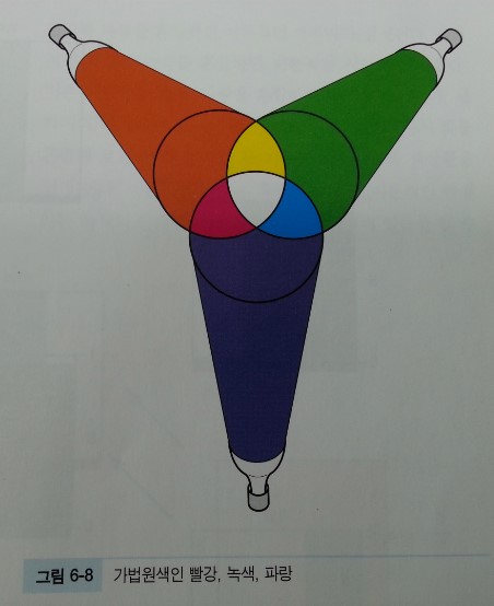 (빛과 색은 사실 거의 같은 의미인데, 세부적으로 구분하였다. 빛을 디스플레이와 전등빛과 같은 빛의 혼합을 말한다면, 색은 그림과 물감과 같이 색료의 혼합으로 생기는 경우이다.)