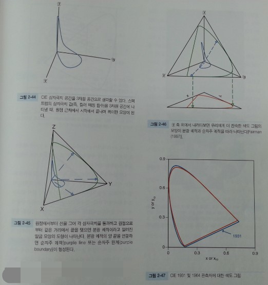 기술 서적이라 아주 중요한 내용만 골라 보았는데, 위 리뷰의 내용만 알아도 색채학과 컬러에 대해서 기본적 내용은 충분히 파악하였다고 생각된다. 개인적으로는 장기 프로젝트로 읽고 있던 책을 마무리하여 좋았다. 이러한 책이 몇권 있는데, 맨날 가볍고 흥미 위주로 갑자기 손에 잡히는 책 위주로 읽다보니 이런 책은 진도가 나가지 않았다. 더운 여름이 지나면 다 읽히지 않을까 바래본다.