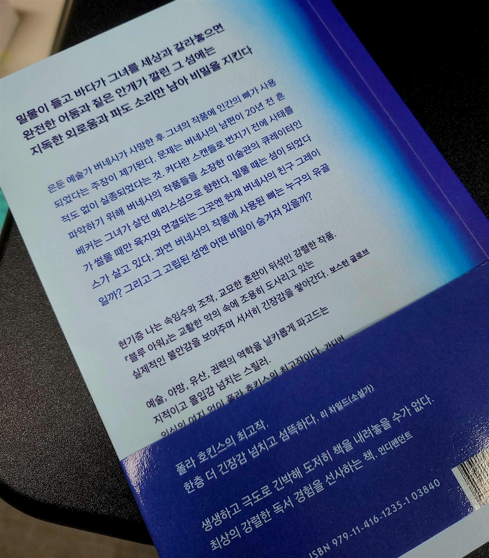 폴라 호킨스의 <블루 아워>는 예술과 인간 심리, 기억의 왜곡과 진실의 탐색을 중심으로 전개되는 심리적 미로를 탐험하는 듯한 책이었습니다. 그녀의 대표작 『걸 온 더 트레인』에서 보여준 ‘믿을 수 없는 화자’와 느리지만 강렬한 서사 전개는 이번 작품에서도 유효했습니다. 더욱 정교하고 깊이 있는 방식으로 저를 사로잡았습니다.