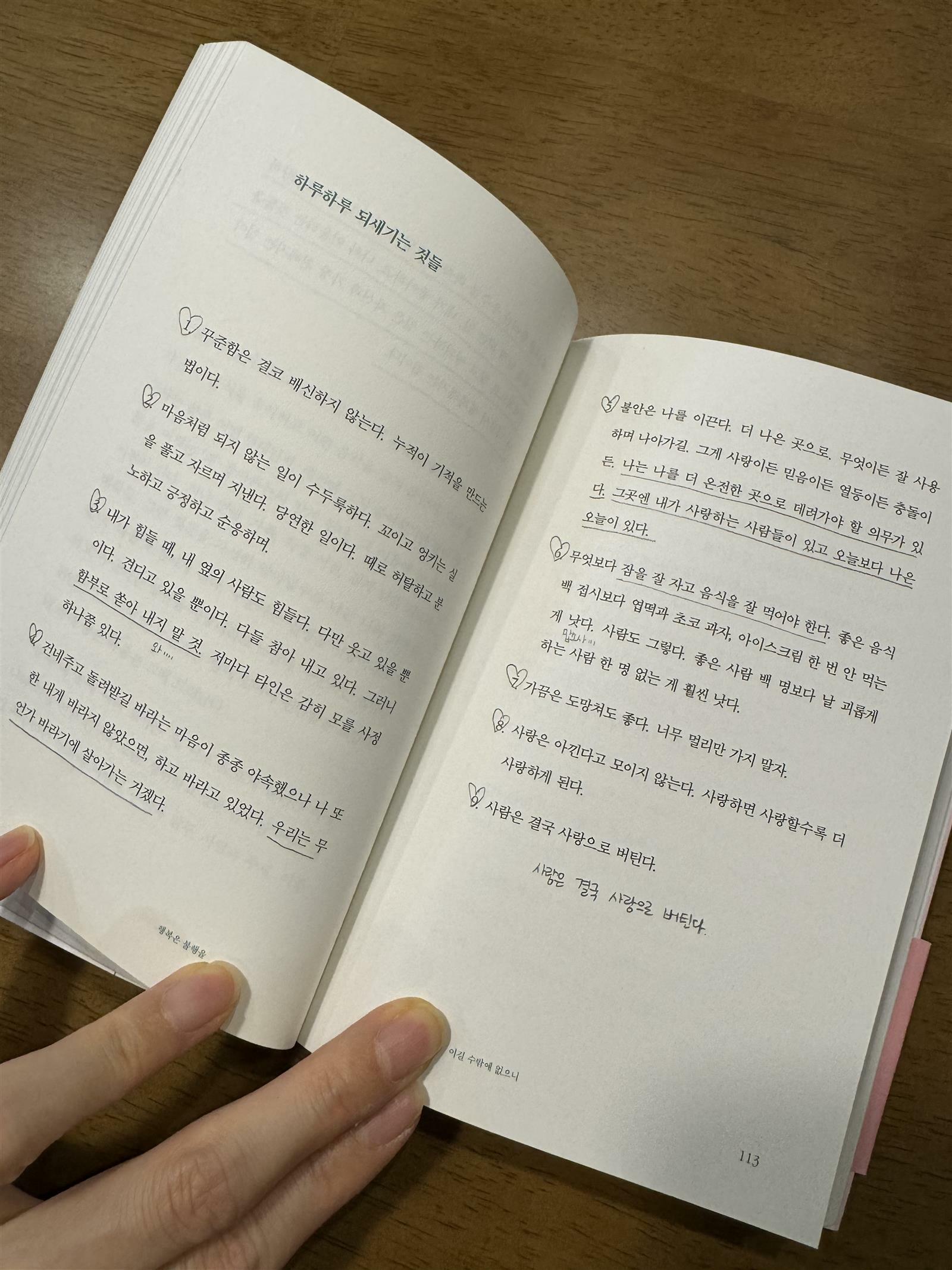 감동적인 문장도, 간직하고 싶은 문장들도 긋다보니 한손에 들어오는 책인데도 꽤 많은 밑줄을 가지고 있네요