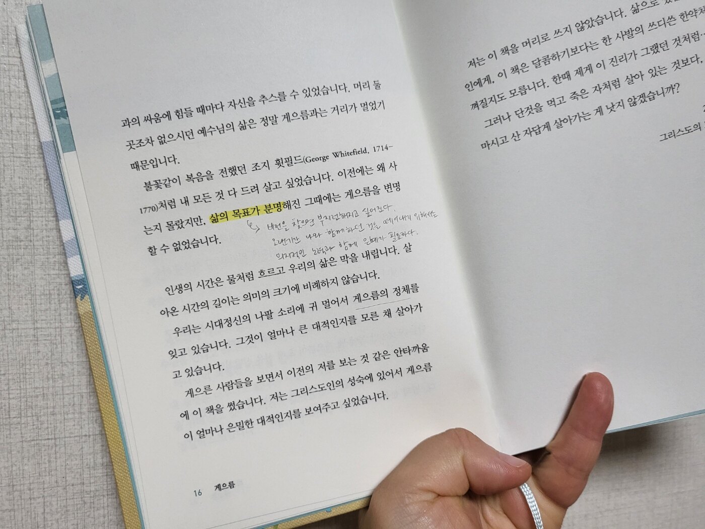 4. 책에서는 게으름을 끊어내기 위해 '방향'과 '거룩한 목표'가 필요하다고 한다. 하나님께 거저 받은 은혜를 흘려보낼 수 있도록 선한 꿈을 꾸고 실제로 해낼 수 있는 목표들을 세워야 시간과 에너지를 그나마 낭비하지 않은 채 열심을 낼 수 있다고 말이다.