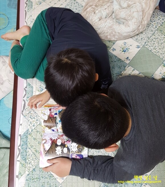 겨울밤 이불 속에서 하하호호 형제의 웃음이 끊이지 않네요.