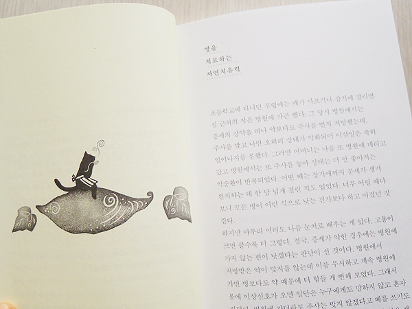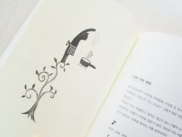책 중간 중간에 간단하고 심플한 고양이 일러스트가 있어요.