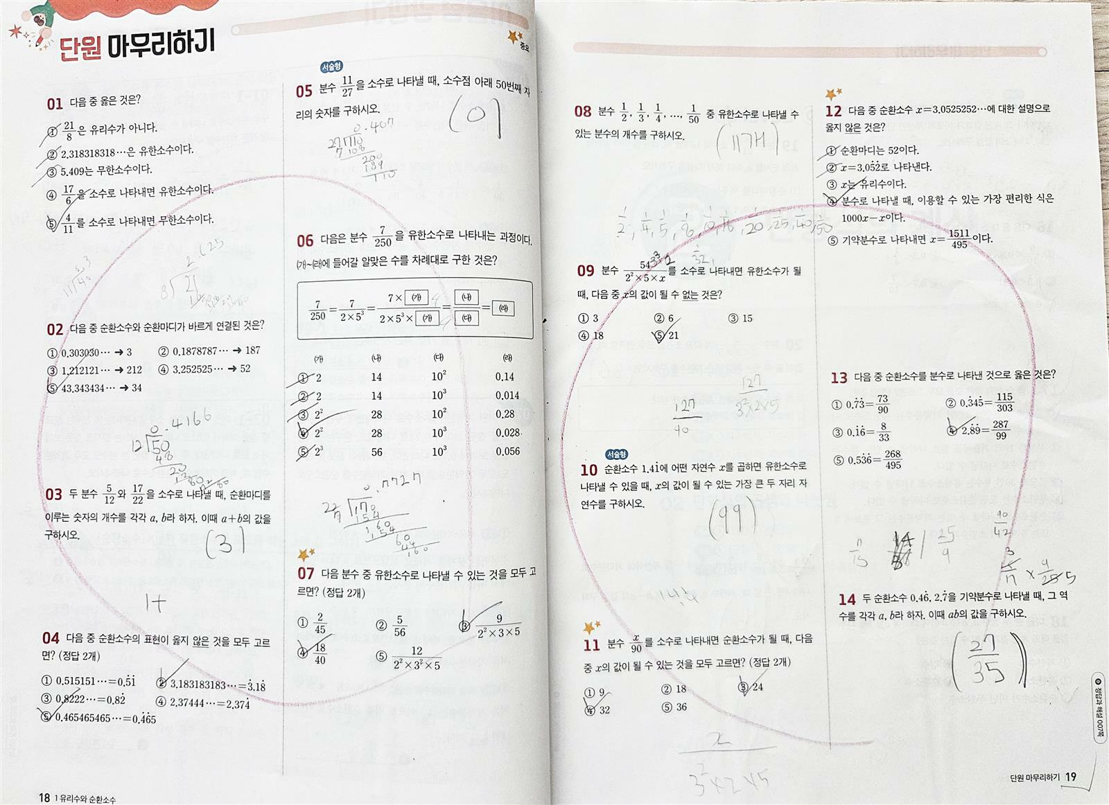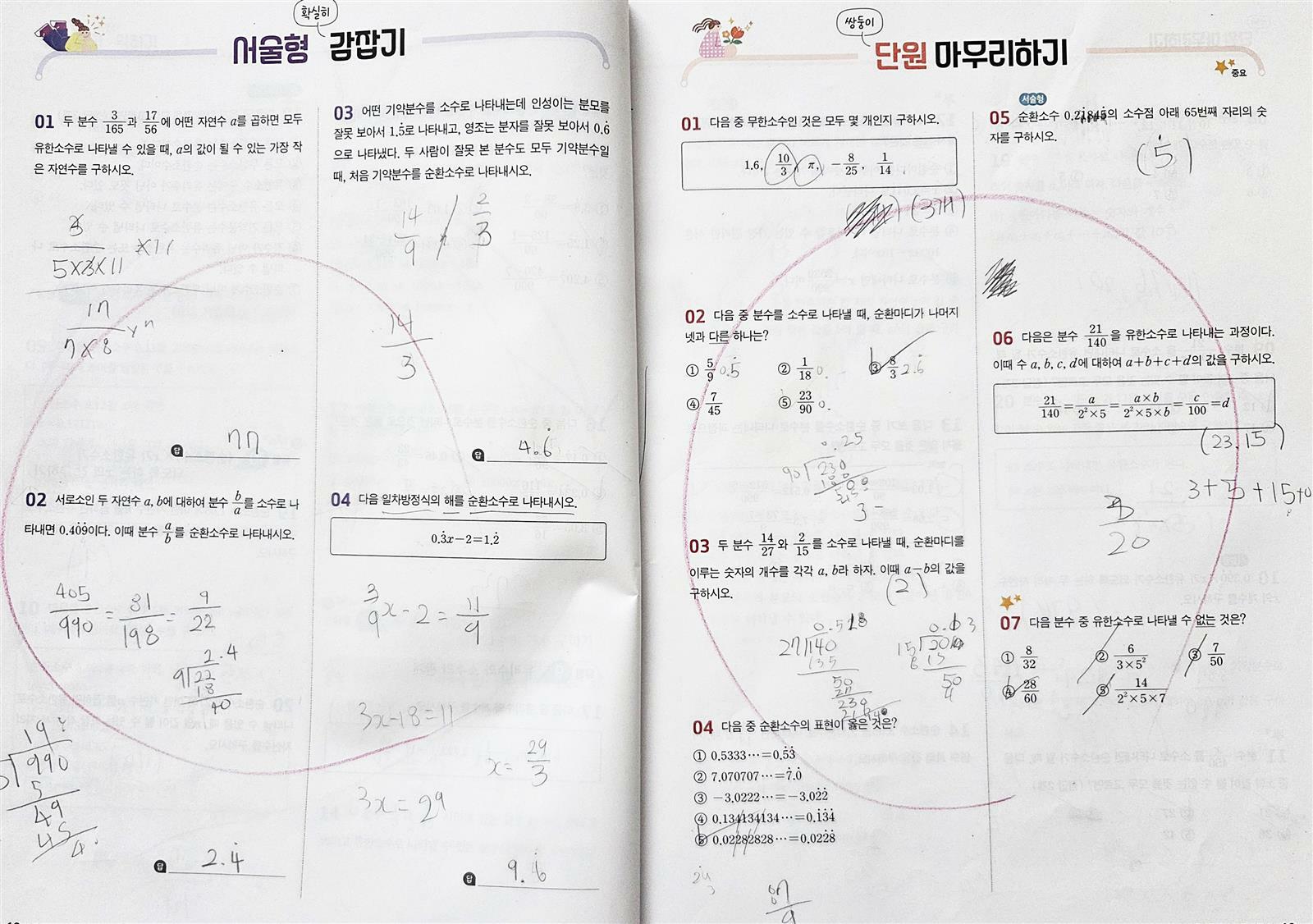 1단원 유리수와 순환소수를 마무리하고