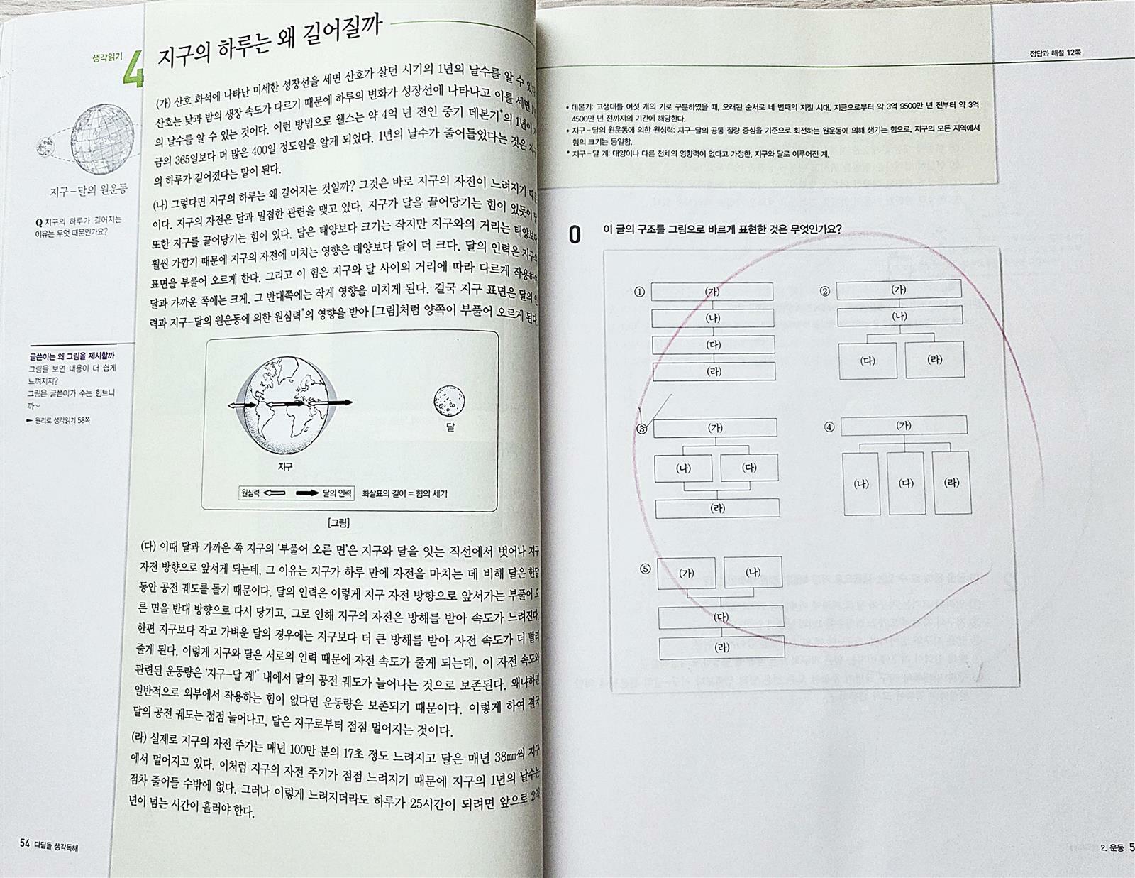 생각 독해로 학습을 이어가고 있는데