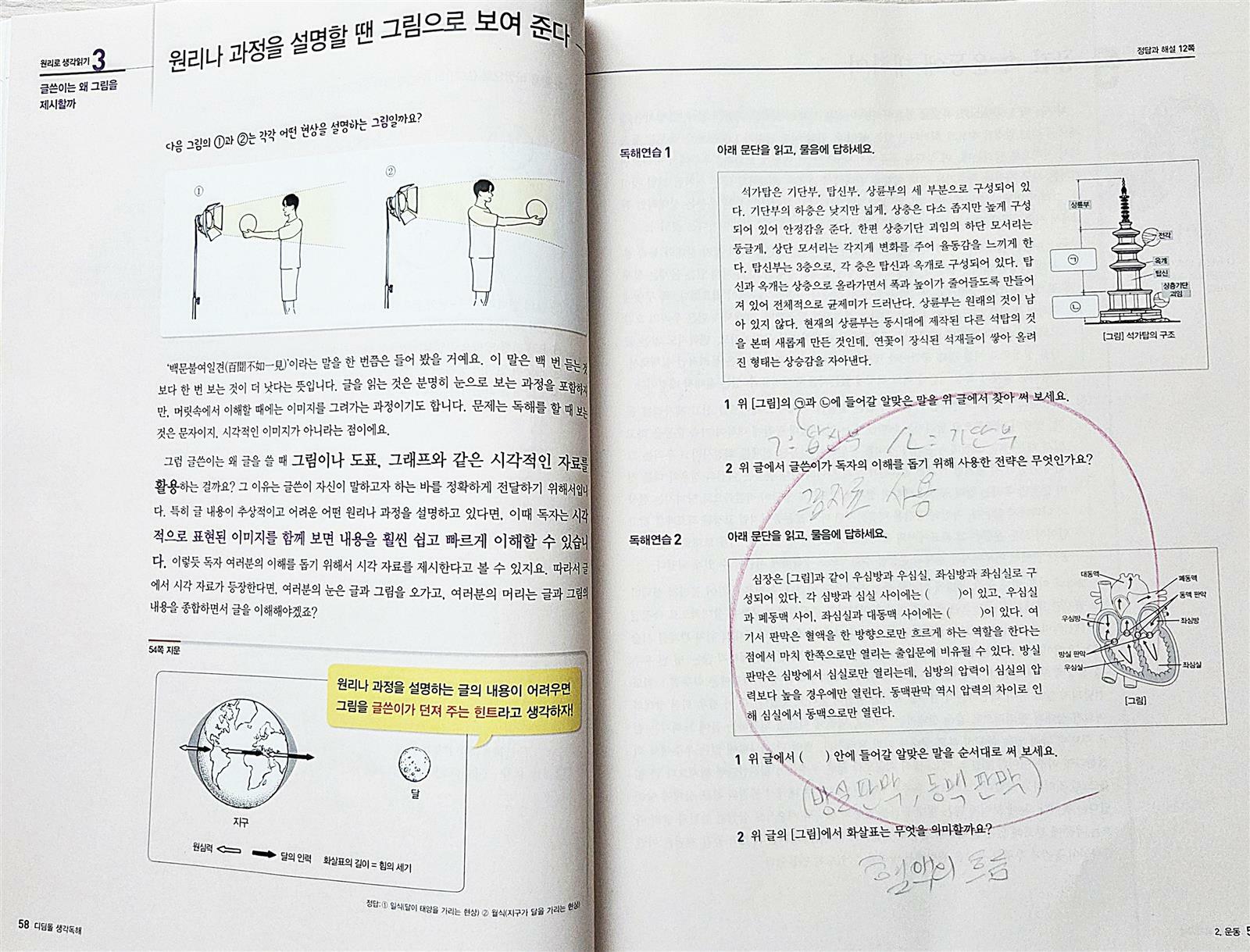 아이들은 독해 교재를 공부할 때