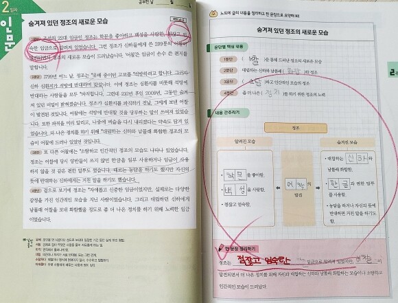 이 교재는 지문의 내용을 어떻게 정리해야 하는지 알려주거든요