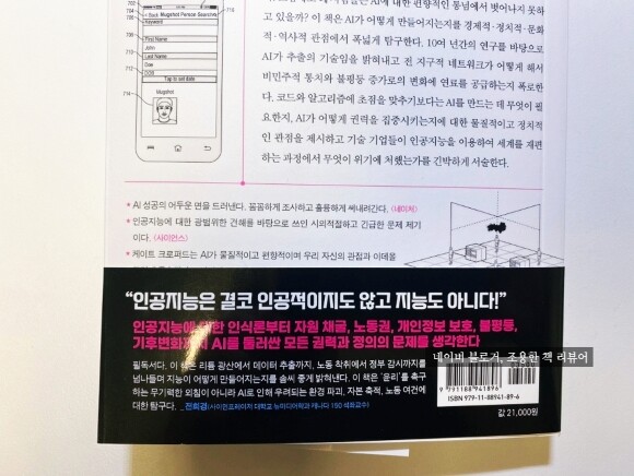 결국 이 책을 통해 AI와 지구적 연산의 근본적 문제를 해결하기 위한 인식론과 노동권, 자원 채굴과 개인정보 보호 그리고 인종 불평등과 기후변화까지 모든 권력과 정의의 문제를 연결해야 한다고 주장한다는 것을 알 수 있다.